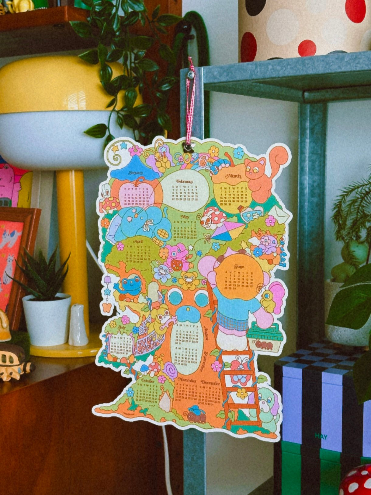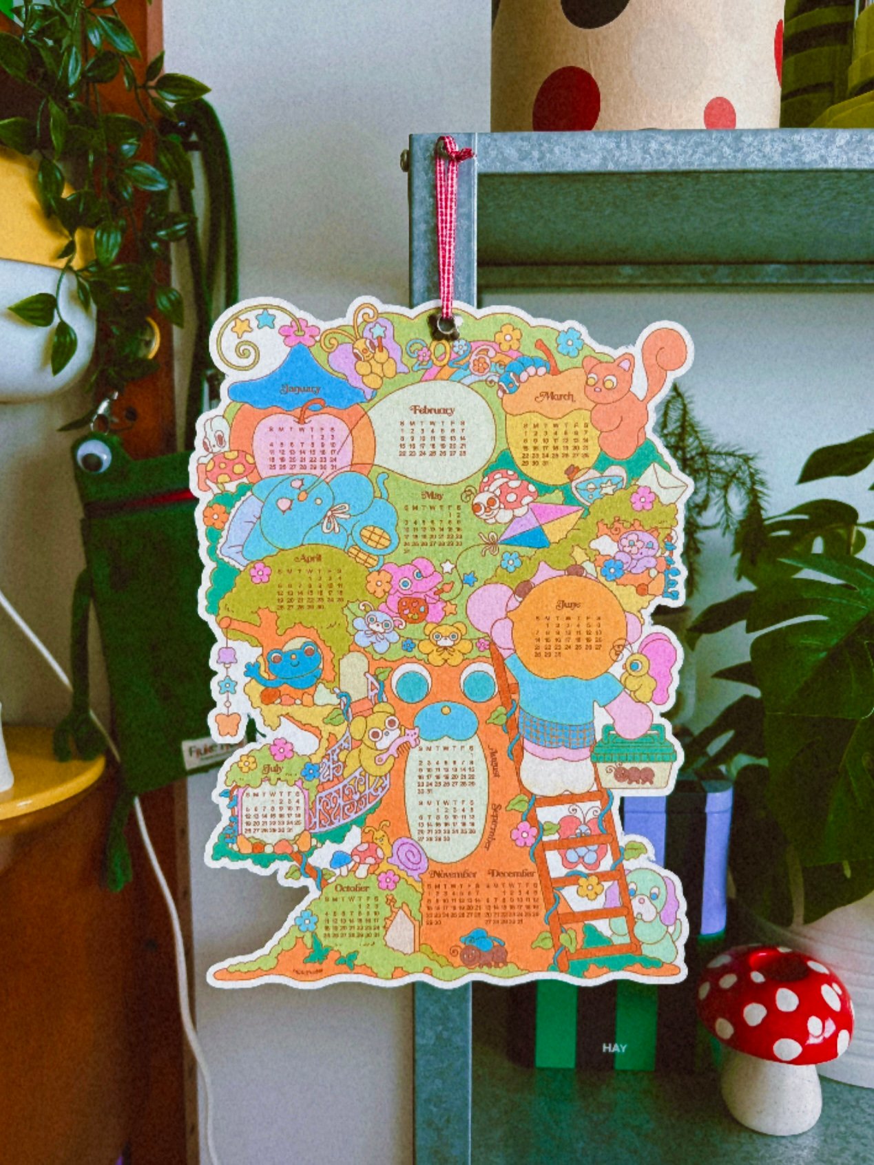 2026 treehouse calendar! It is double sided with the months on one side and full illustration on the other! After the year ends, flip it over and display as an art print!